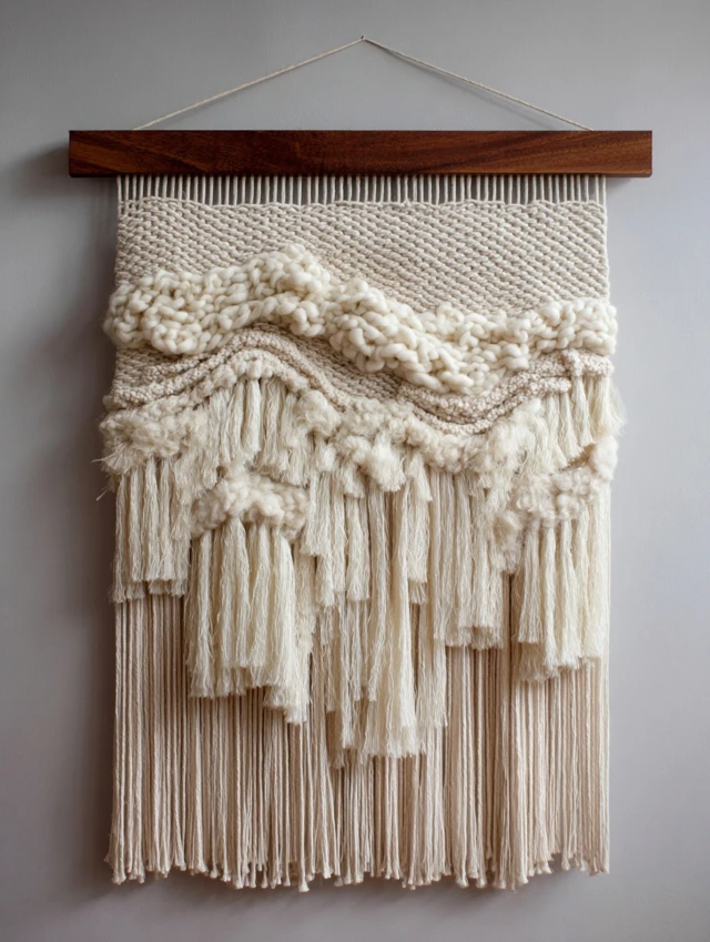 Macramé, tapestries, or woven panels.