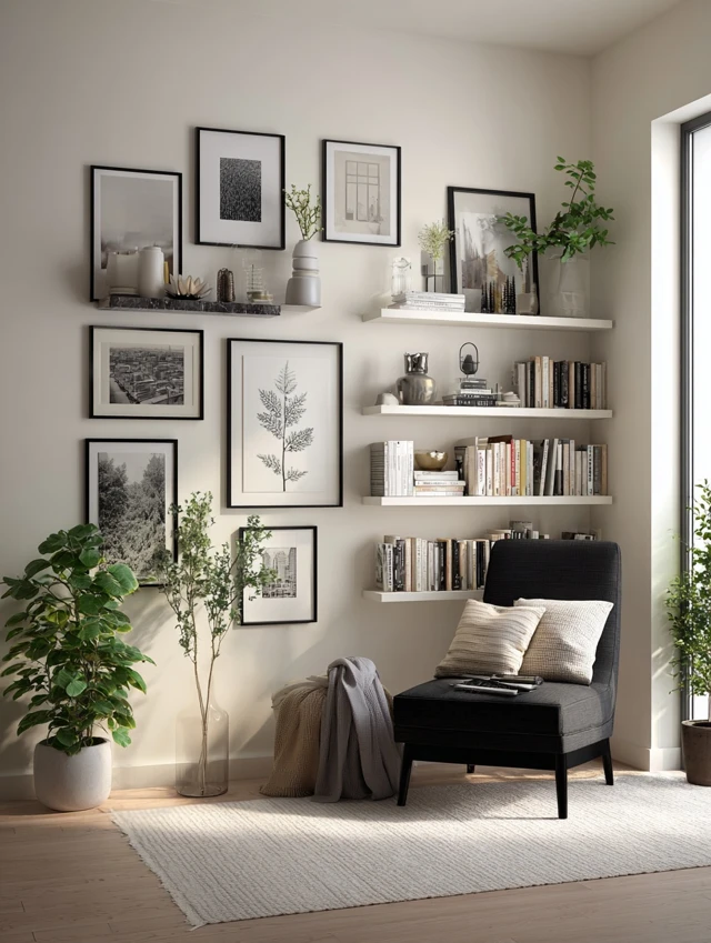 - Include small shelves or floating ledges.