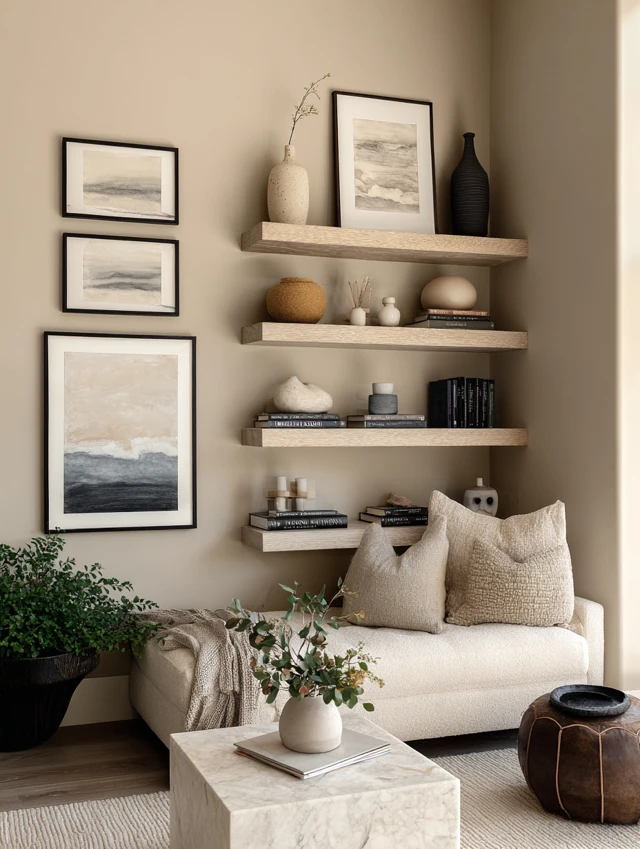 A well-styled neutral wall doesn’t feel plain.