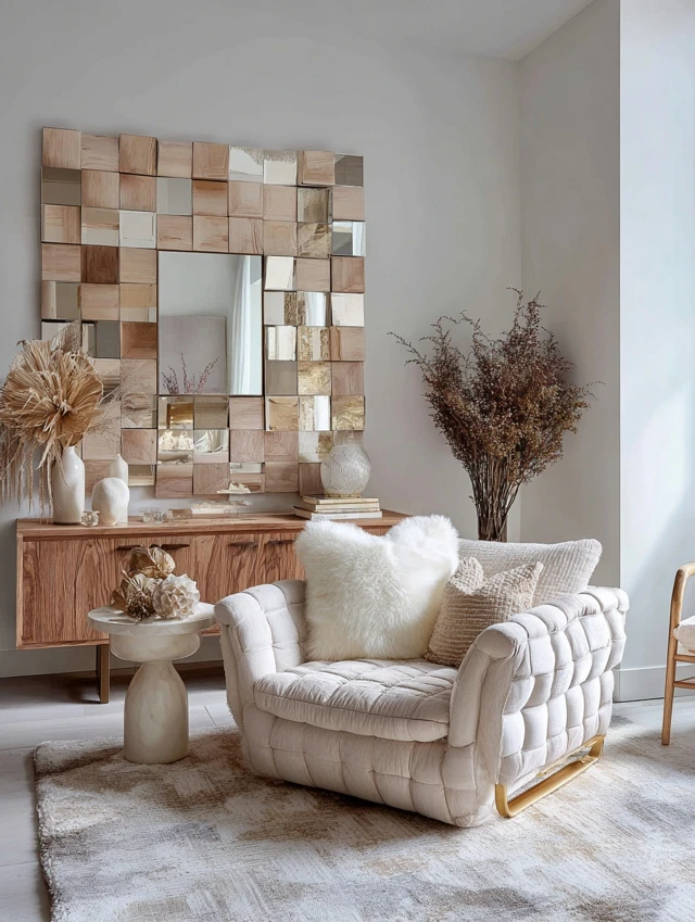 Why it works: Makes rooms feel brighter and larger without competing with neutral tones.